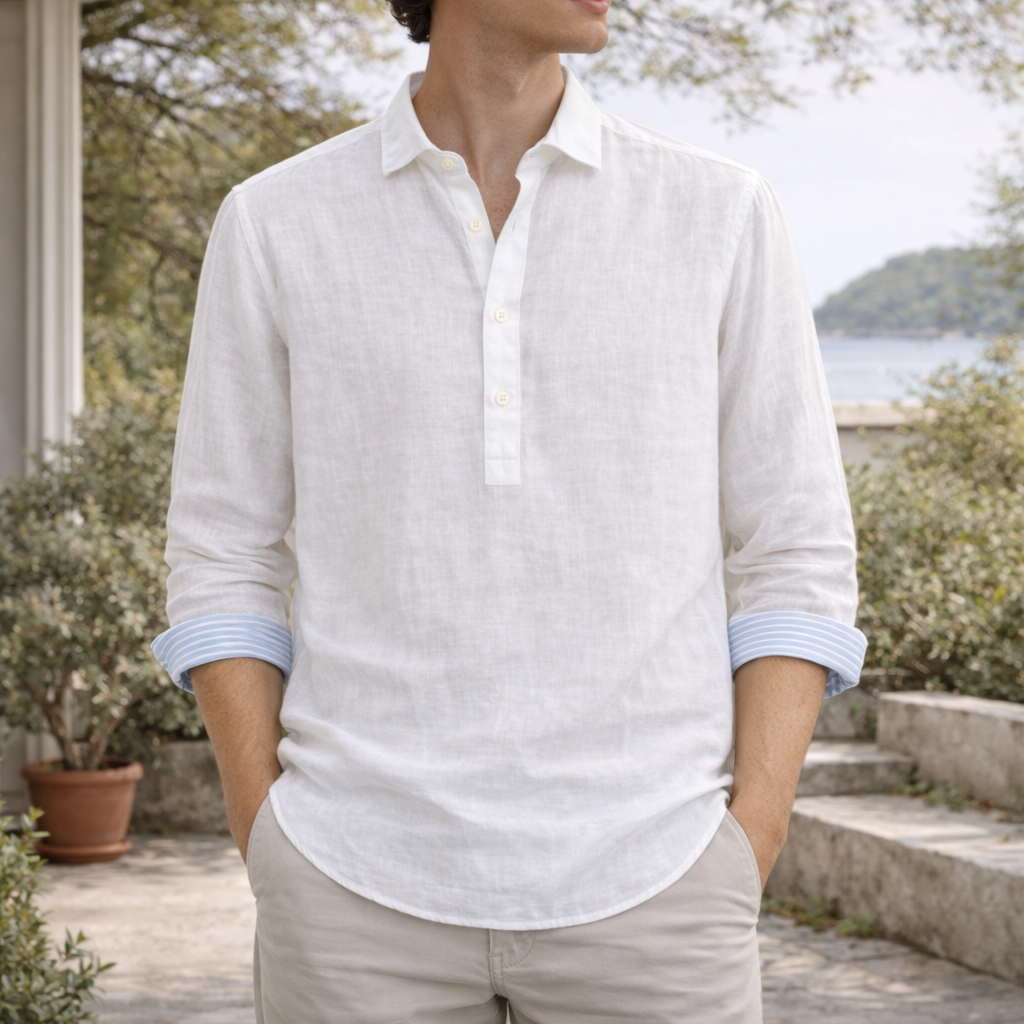 Esta camisa es una inversión en estilo consciente y moda sostenible. Es ideal para hombres que valoran tanto la estética clásica como la practicidad moderna. Además, este diseño pullover is un símbolo de buen gusto relajado. Puedes conocer más sobre la historia del lino for apreciar su valor tradicional.