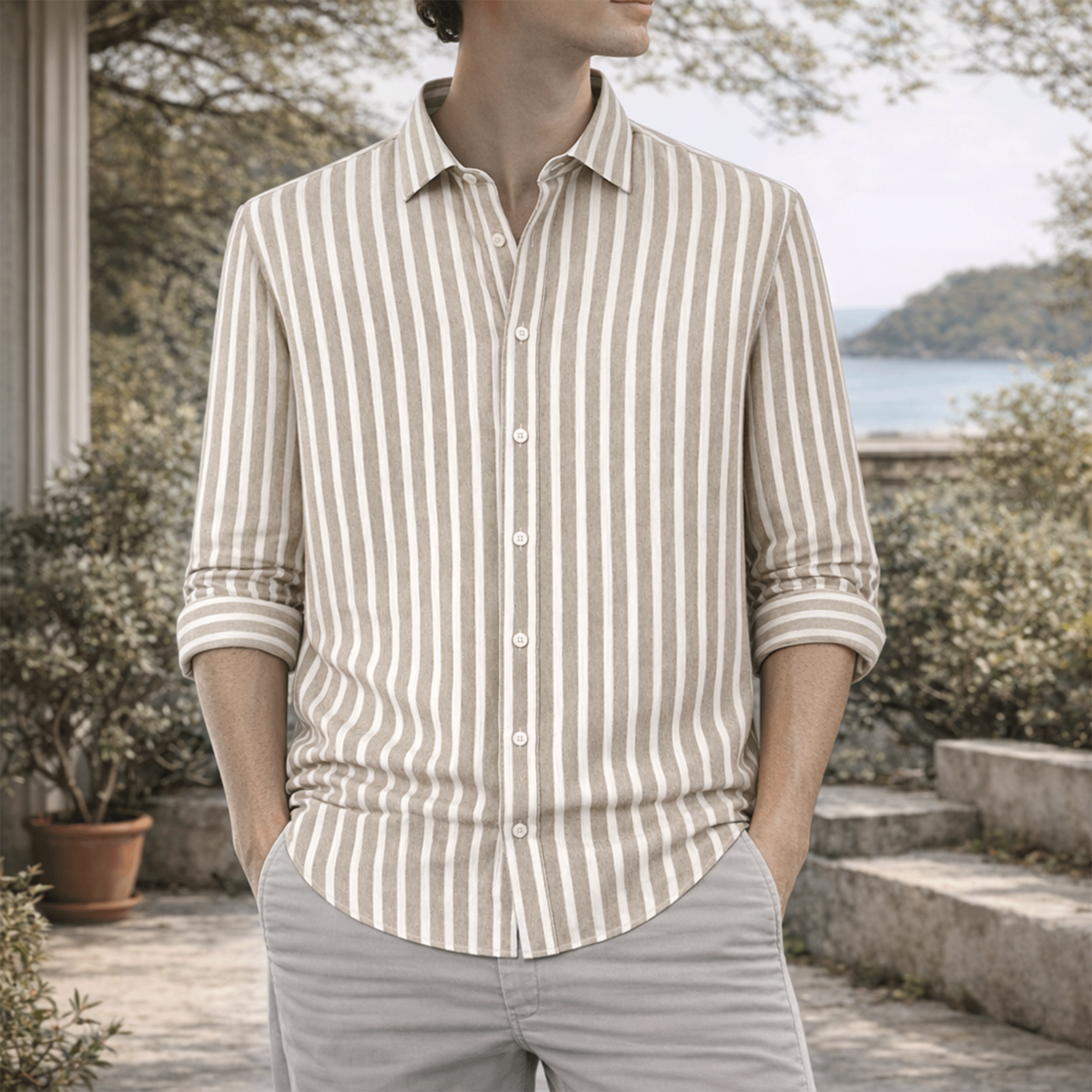 Camisa Lino Rayas Hombre: Elegancia y Estilo Refinado para el Verano